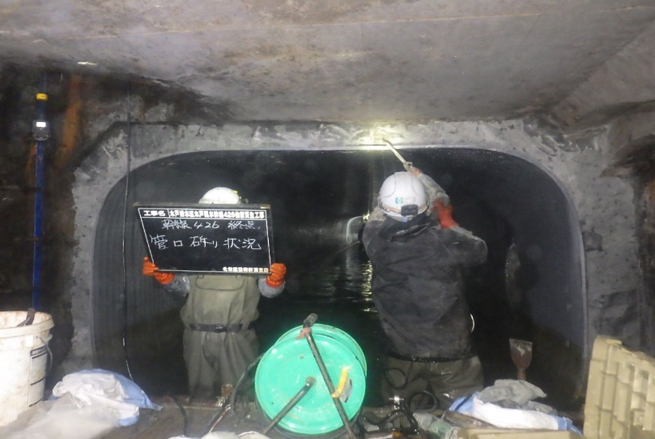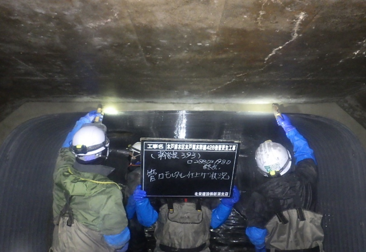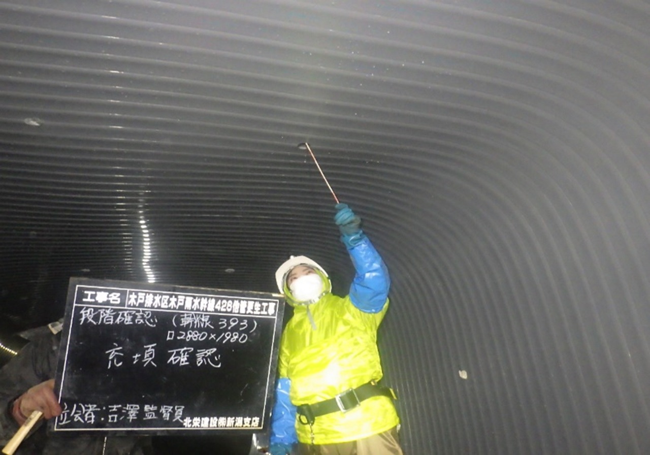 管内清掃後、新潟市の工事監督員より確認をしていただき作業完了となります。