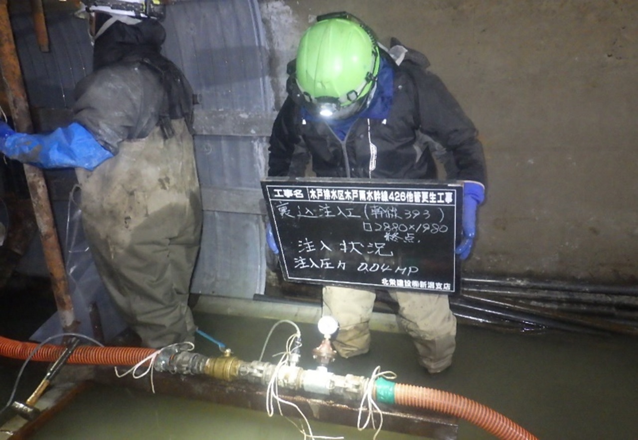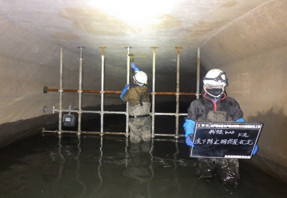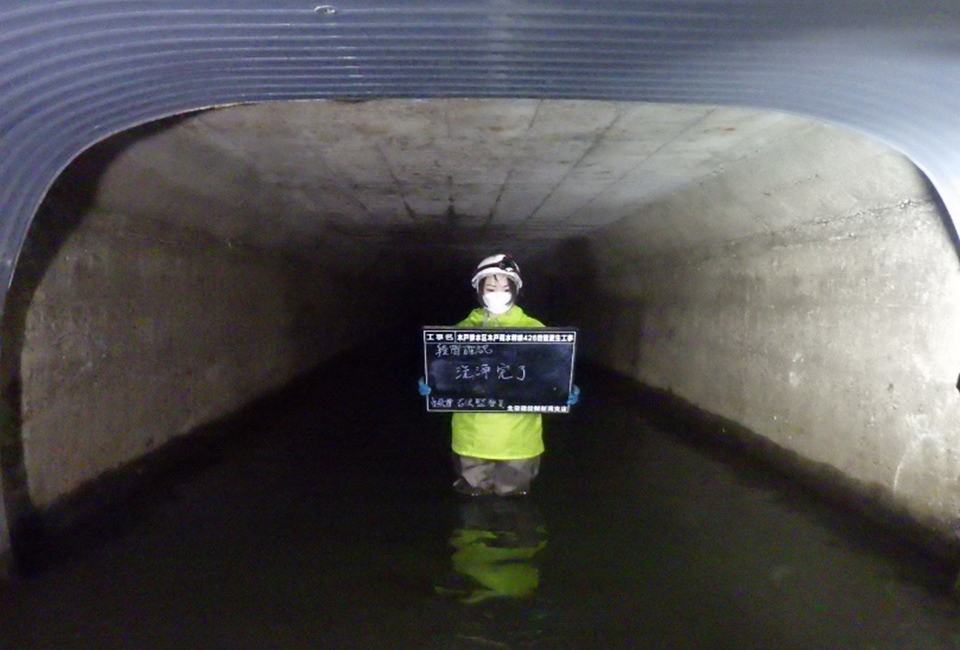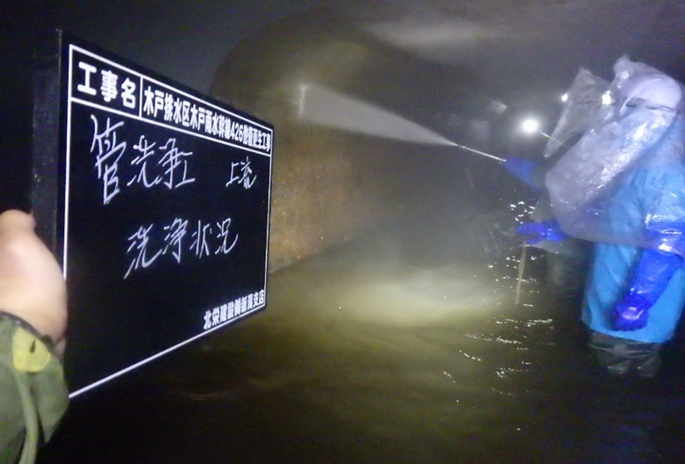 管内清掃後、新潟市の工事監督員より確認をしていただき作業完了となります。