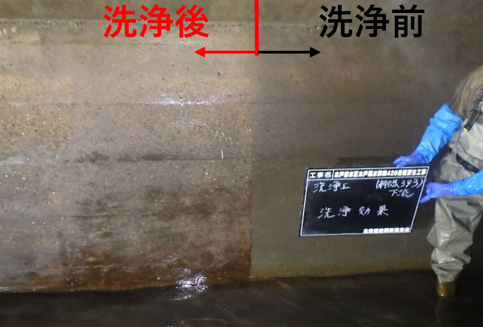 洗浄終了後、新潟市の工事監督員より立会検査をしてもらいました。