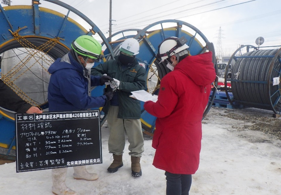 新潟市の工事監督員より材料確認(数量)をしてもらいました。