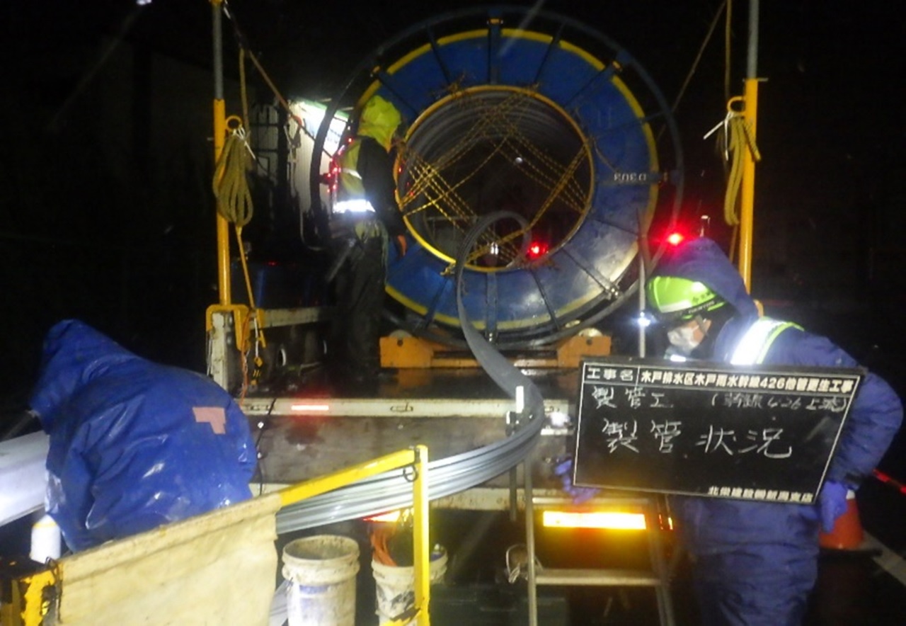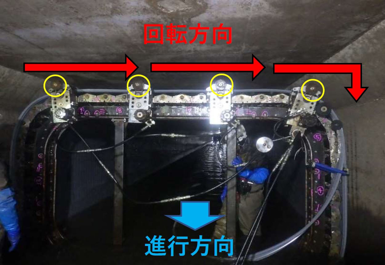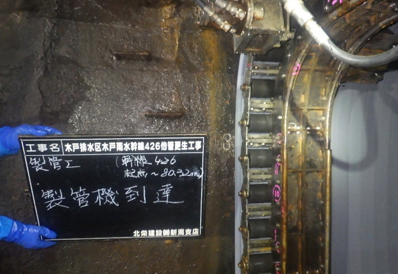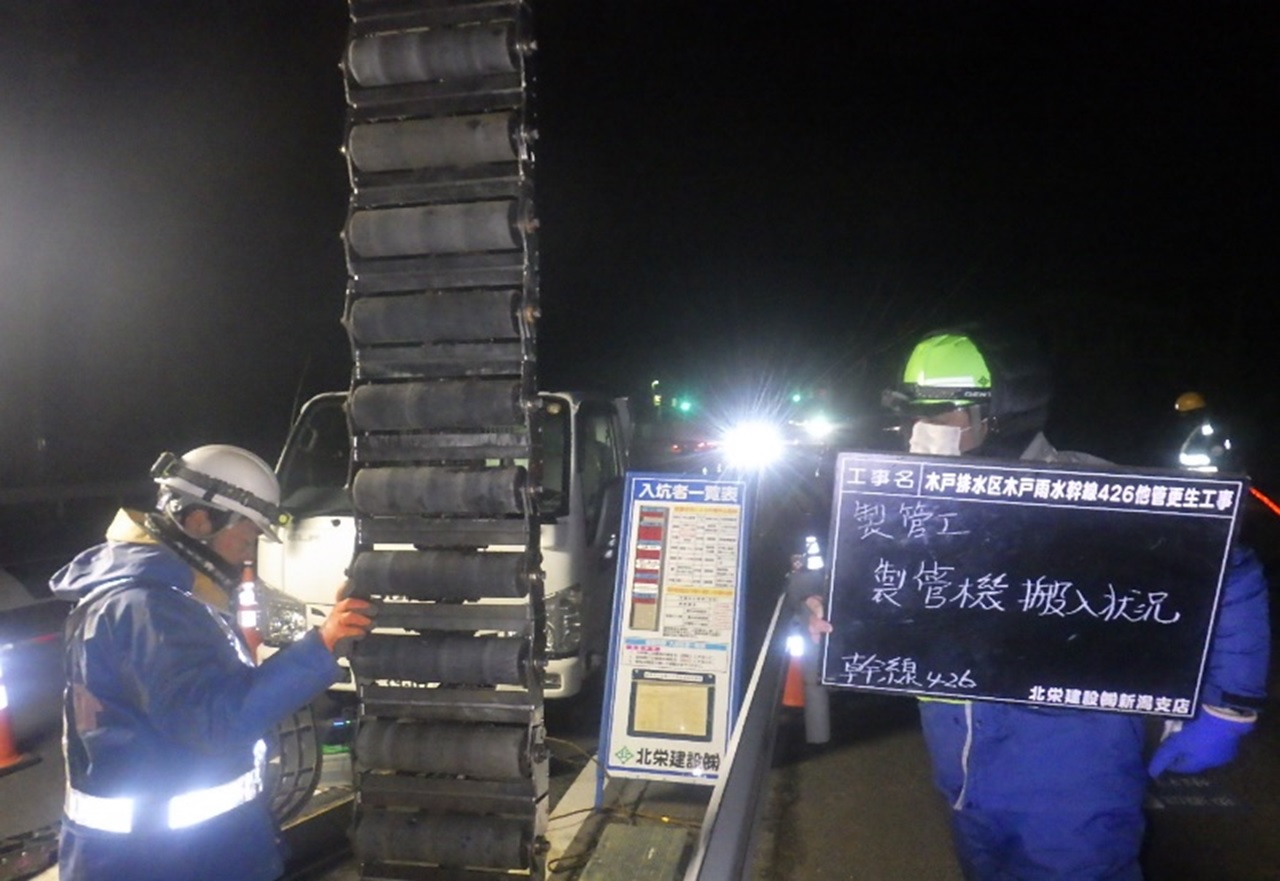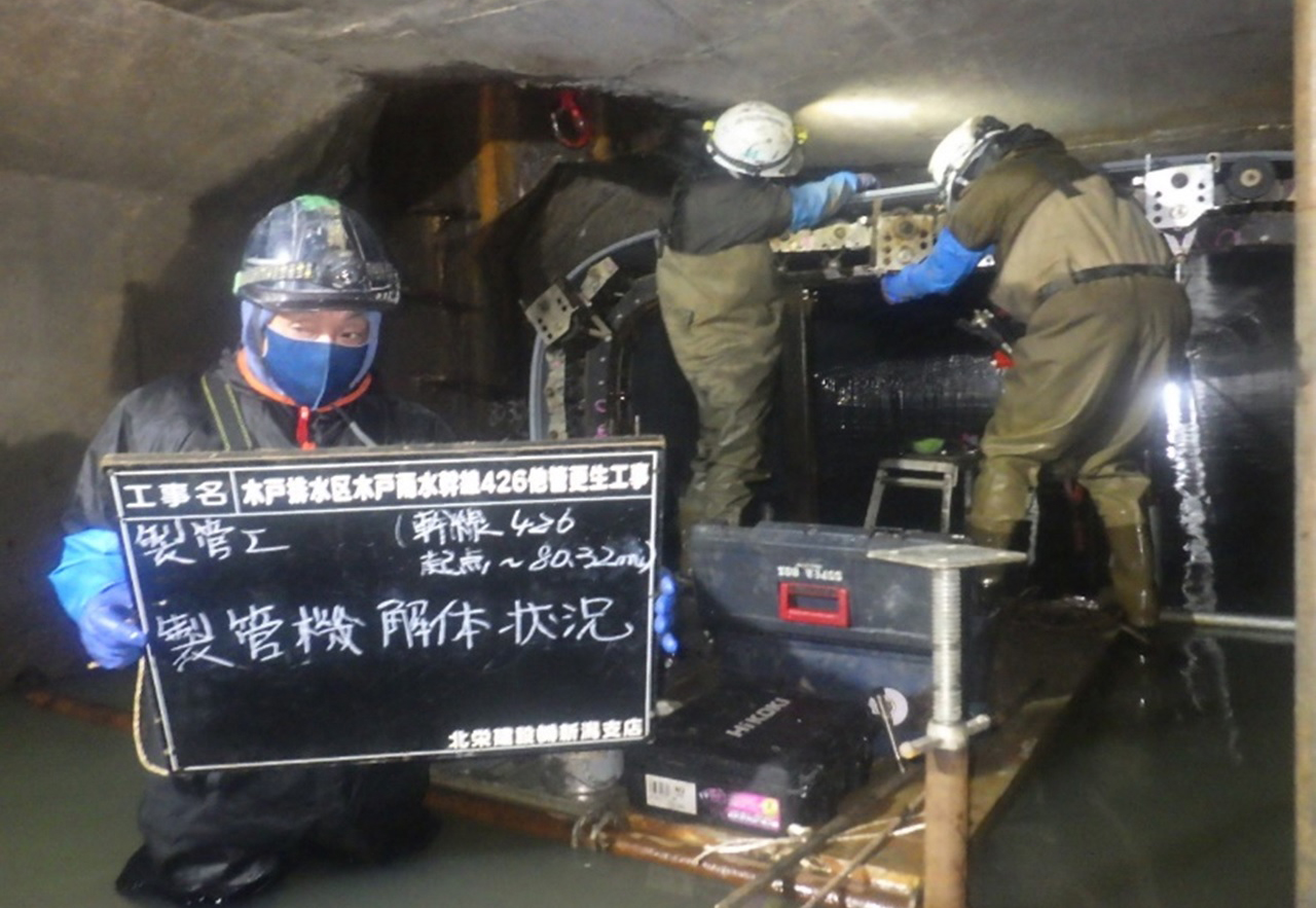 製管機の部材はマンホールから下ろし、管内で組み立てます。