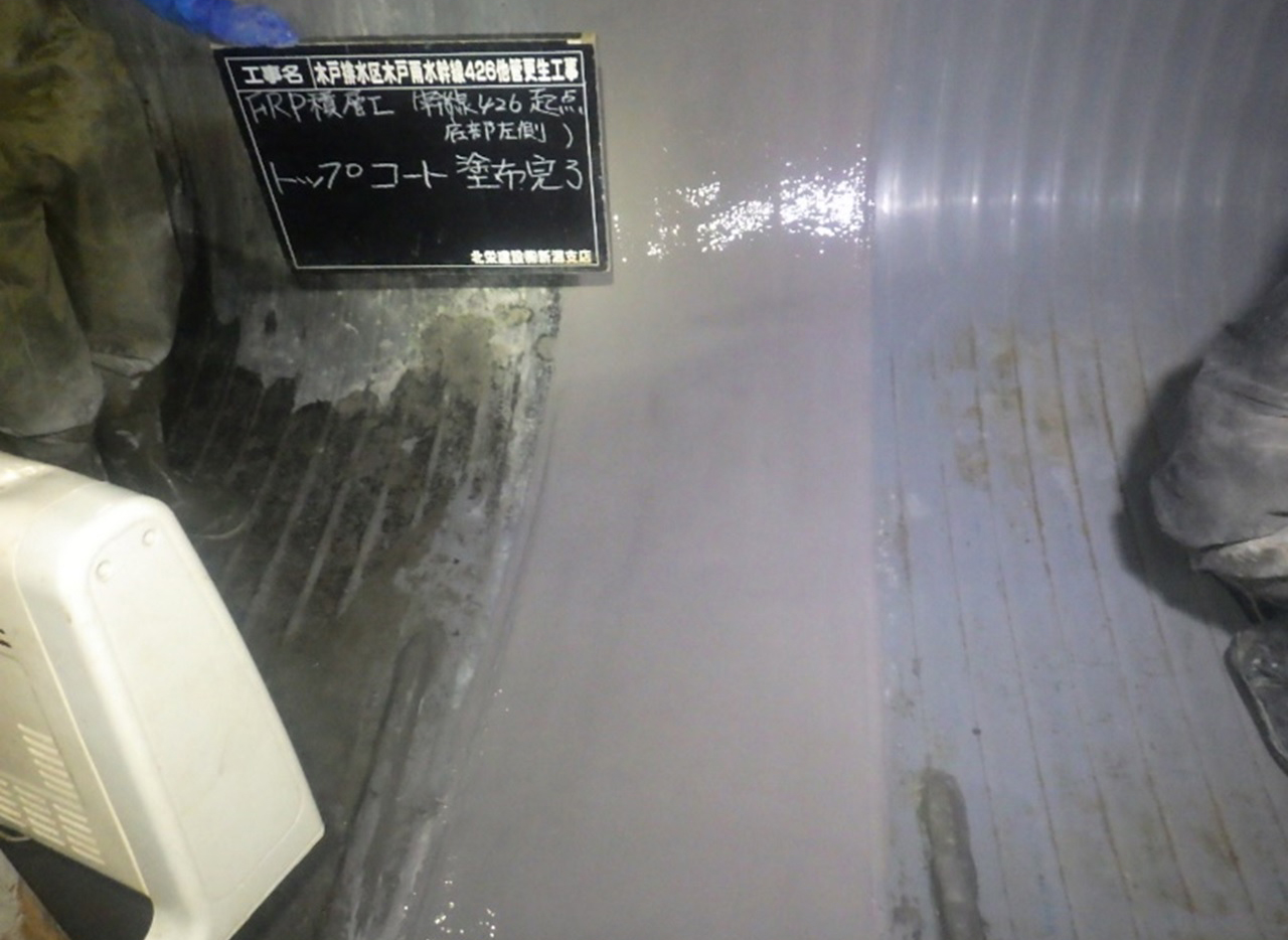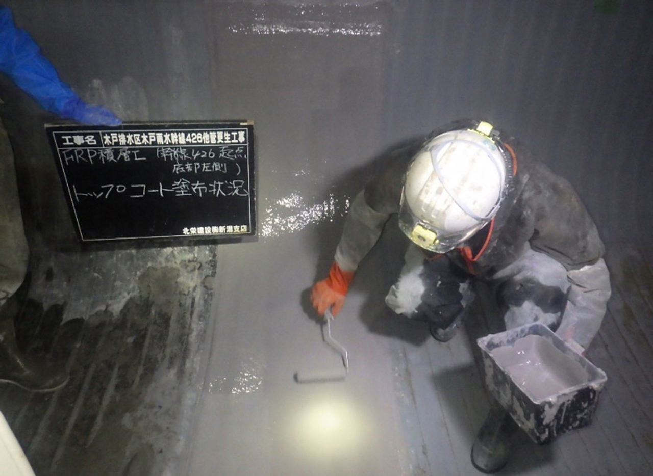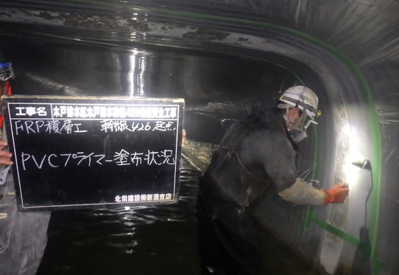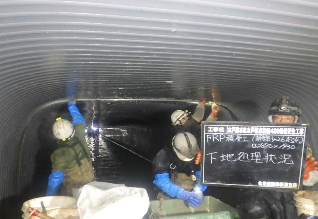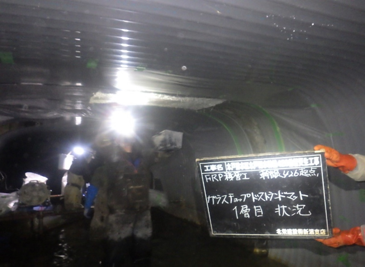 前年度施工箇所との接合部にFRP(繊維強化プラスチック)を施工します。